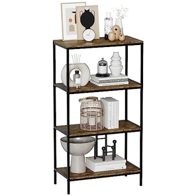 Vida Designs Brooklyn Bookcase Wooden Shelving Shelf Storage Display Shelves Unit Industrial Rustic Furniture (Dark Wood, 4 Tier)