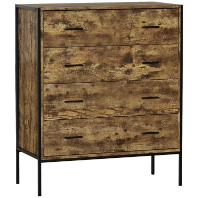 Vida Designs Brooklyn Industrial Chest of Drawer Rustic Bedroom Storage Unit, Cabinet Dresser with Metal Frame (Dark Wood, 4 Drawer)