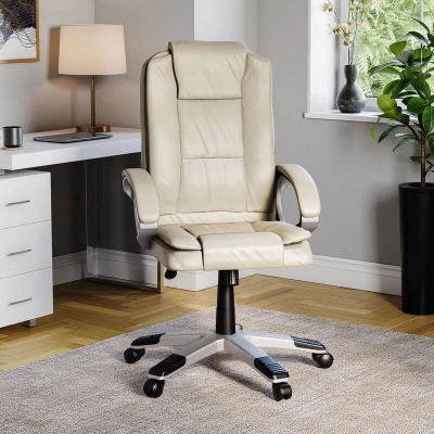 Vida Designs Charlton Executive Office Chair Ergonomic Desk with Padded Armrests, Adjustable Height and 360 Swivel Ideal for Home Office, Study or Gaming Cream PU Leather (UKFR Certified)