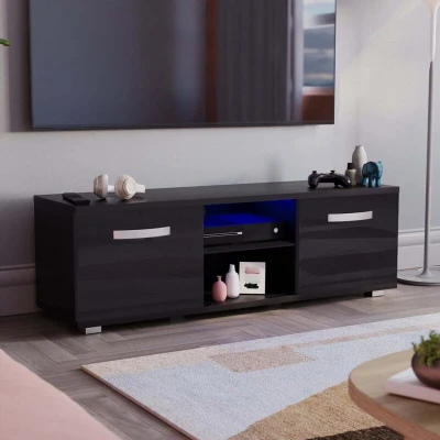 Vida Designs Cosmo LED TV Unit 2 Door Modern Gloss Matte MDF Living Room Cabinet Media Stand Furntiure RGB Light Black 120cm