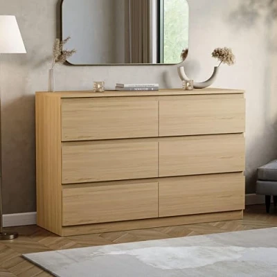 chest drawer unit particle board MDF pine effect flat pack assembly required bedroom furniture shelving clothes storage indoor furniture metres wide deep tall wood effect laminate surface metal handle