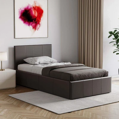 Vida Designs Lisbon Single Bed, 3ft Ottoman Bed Frame Upholstered UKFR Faux Leather Headboard Low Foot End Bedroom Furniture, Brown