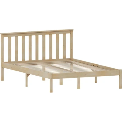 General description Introducing our elegant Solid Wood Milan Bed Frame, a perfect blend of timeless design and exceptional craftsmanship. Crafted from high-quality solid wood, this bed frame ensures durability and stability that will last for years. It features a beautifully designed wood headboard that adds a touch of rustic charm and sophistication to your bedroom decor. The low foot end footboard creates an open and airy feel, enhancing the overall aesthetic of your space while providing a sleek, modern look. Equipped with sturdy wooden slats, this bed frame offers robust support for your mattress, ensuring a comfortable and restful night's sleep. The slats are designed to distribute weight evenly, prolonging the life of your mattress and maintaining a consistently supportive sleeping surface. Constructed from premium solid wood, this bed frame not only guarantees long-lasting durability but also complements a wide range of interior styles, from traditional to contemporary.