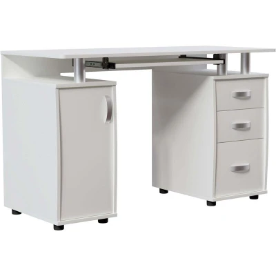 ManoManoGeneral description This Otley 3-Drawer Computer Desk is a stylish and functional addition to your home office or study. It combines contemporary design with practicality, providing ample storage and workspace for your productivity needs. With three spacious drawers, this desk offers convenient storage for office supplies, paperwork, and personal belongings, ensuring a tidy and clutter-free workspace. The internal shelf behind the door provides extra storage for books, folders, or other items, while the sliding keyboard tray adds ergonomic comfort for typing. Technical specifications Size: H 74 x W 120 x D 55 cm Weight Limit: 80 kg Material: MDF Finish: Melamine Installation This item requires self-assembly with easy-to-follow instructions provided. Other information The actual colour of the product may vary slightly due to screen display settings and lighting conditions.