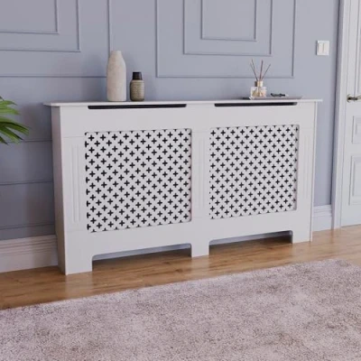 Cross Pattern Design: Stylish and contemporary cross pattern enhances the aesthetic appeal of any room. Optimal Heat Circulation: Ensures efficient and even distribution of warmth throughout the room. Easy Installation: Simple and quick setup process, making it convenient for anyone to install. Important Note: Please measure your radiator, including the thermostat and any visible plumbing you wish to cover, and ensure the internal dimensions of the radiator cover are slightly larger than your radiator for a proper fit. Internal Dimensions: H80xW141xD16cm External Dimensions: H82xW152xD19cm