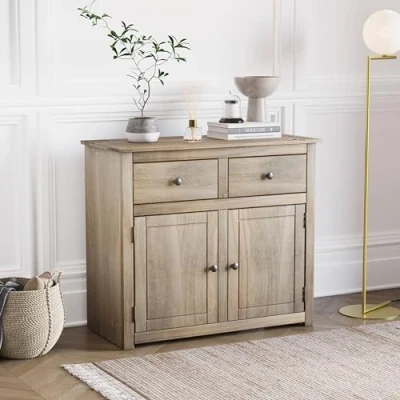 The Vida Designs Panama Sideboard has a modern and stylish design that will complement any room in your home. The natural pine color and solid pine construction give this sideboard a classic look that is perfect for both traditional and contemporary decor styles. The clean lines and simple design make it easy to pair with other furniture pieces and decor items. This sideboard features a two-door unit with an additional two drawers at the top for extra storage. It is a versatile piece of furniture that provides ample storage space for all your essentials, including fancy dinner party dishes, serving dishes, glassware, and table decor. The spacious design makes it perfect for use in your living room, dining room, or even your bedroom. The Sideboard is made of solid pine wood, making it exceedingly robust and durable. Pine wood is known for its strength and durability, making it an ideal choice for furniture that is meant to last. With proper care and maintenance, this sideboard will retain its beauty and functionality for many years. This sideboard comes flat-packed for easy home assembly. While some assembly is required, the process is straightforward and easy to follow. The product comes with clear instructions and all the necessary hardware, so you can assemble it quickly and easily. With a few simple tools and a bit of patience, you can have your new sideboard set up and ready to use in no time. The tinted wax finish protects and preserves the wood, creating a charming rustic appearance. The top surface of the sideboard offers the ideal resting place for ornaments, pictures, and other decorative items. You can add a personal touch to your living space by decorating this sideboard with your favorite items, creating a beautiful and welcoming atmosphere. The classic design of the sideboard will add a touch of rustic charm to your home, making it a great addition to any room.
