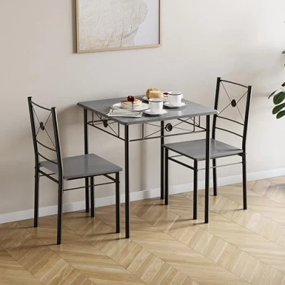 Vida Designs Roslyn Dining Table and Chair Set, Kitchen Breakfast Modern Contemporary Furniture Set (Concrete Grey, 2 Seater)