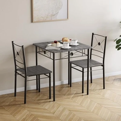 Vida Designs Roslyn Dining Table and Chair Set, Kitchen Breakfast Modern Contemporary Furniture Set (Grey, 2 Seater)