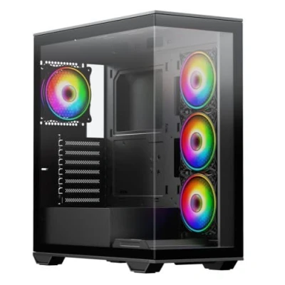 VIDA Solus Black ARGB Gaming Case w, Glass Side and Front, ATX, 4x Fans, 6 Port PWM Hub, USB C