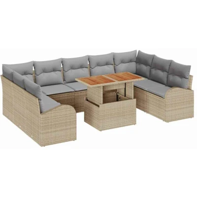vidaXL 10 Piece Garden Sofa Set with Cushions Beige Poly Rattan
