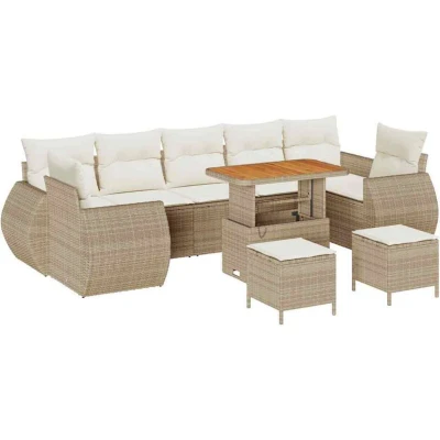 vidaXL 10 Piece Garden Sofa Set with Cushions Beige Poly Rattan Acacia
