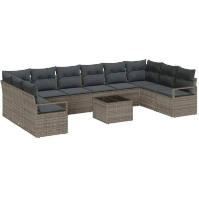 ManoManoGeneral description This modern garden sofa set embodies simplicity and functionality, perfect for transforming your outdoor space. With its sleek design characterized by clean lines, this outdoor furniture not only serves as an elegant seating arrangement but also offers practical features like modular configuration and a height-adjustable tabletop. Technical specifications Colour: Grey Material: Poly rattan Seat width: 55 cm Seat depth: 55 cm Centre seat dimensions: 55×62×85 cm (W×D×H) Corner seat dimensions: 62×62×85 cm (W×D×H) Sofa with side table dimensions: 184×62×85 cm (W×D×H) Footstool dimensions: 55×55×40 cm (W×D×H) Garden table dimensions: 100×55×44/73 cm (L×W×H) EAN: 8721158961556 SKU: 3346569 Compatibility and accessories Includes seat cushions with zipper closures for easy maintenance. Features a finished back for a presentable look from every angle. Comes with a water-resistant bag for storing items. Installation Assembly required: Yes Assembly requires two people with a