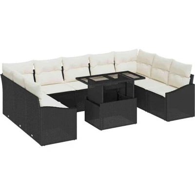 vidaXL 10 Piece Garden Sofa Set with Cushions Black Poly Rattan