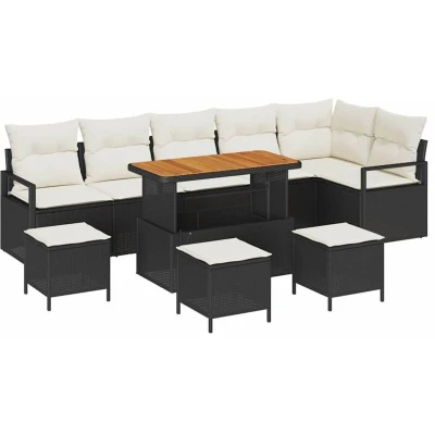vidaXL 10 Piece Garden Sofa Set with Cushions Black Poly Rattan Acacia