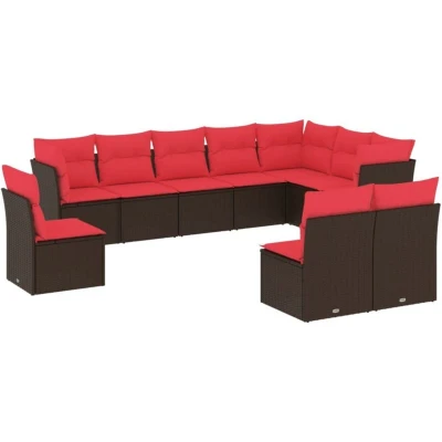 Vidaxl 10 Piece Garden Sofa Set with Cushions Brown Poly Rattan
