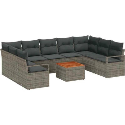 vidaXL 10 Piece Garden Sofa Set with Cushions Grey Poly Rattan Acacia
