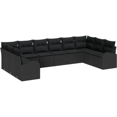 vidaXL 10 Piece Garden Sofa Set with Cushions in Black Poly Rattan