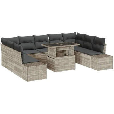 vidaXL 10 Piece Garden Sofa Set with Cushions Light Grey Poly Rattan