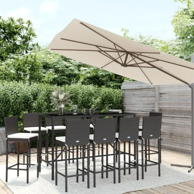 vidaXL 11 Piece Garden Bar Set with Cushions Black Poly Rattan