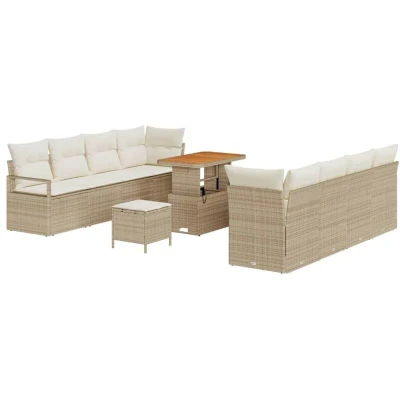 vidaXL 11 Piece Garden Sofa Set with Cushions Beige Poly Rattan Acacia