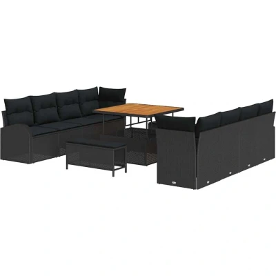 vidaXL 11 Piece Garden Sofa Set with Cushions Black Poly Rattan Acacia