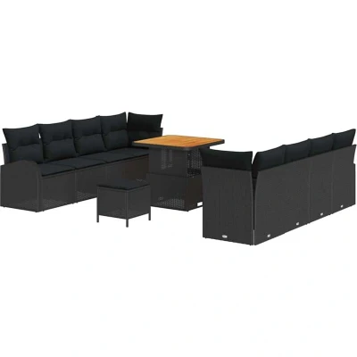 vidaXL 11 Piece Garden Sofa Set with Cushions Black Poly Rattan Acacia