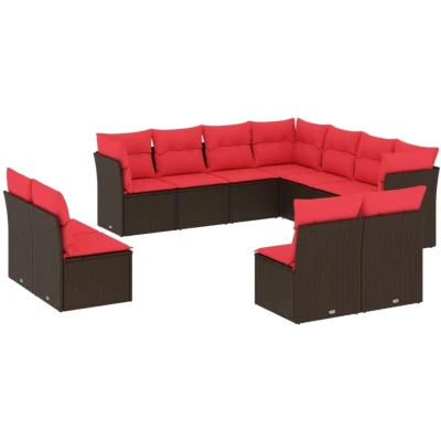Vidaxl 11 Piece Garden Sofa Set with Cushions Brown Poly Rattan