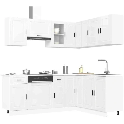 vidaXL 11 Piece Kitchen Cabinet Set Gloss White Engineered Wood Cabinets with Ample Storage & Adjustable Feet