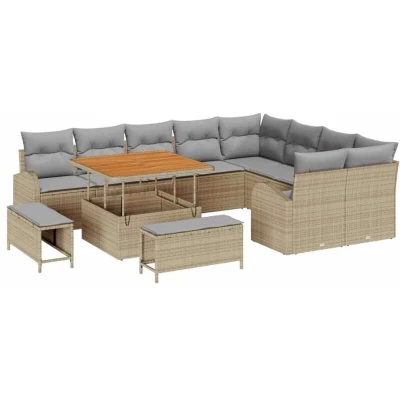 vidaXL 12 Piece Garden Sofa Set with Cushions Beige Poly Rattan Acacia