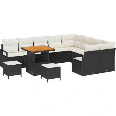 vidaXL 12 Piece Garden Sofa Set with Cushions Black Poly Rattan Acacia