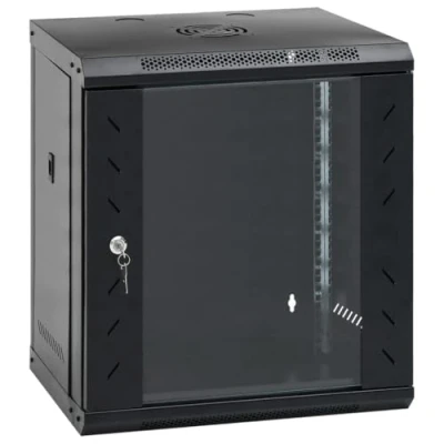 VidaXLThis 12U network cabinet is designed to be a great helper for keeping your network accessories in order. Solid structure: This data cabinet, featuring a solid structure, is made of premium cold-rolled steel, making it strong and durable to use. It is compatible with 19" standard equipment.Easy to maintain: The removable side panels make it easy to maintain network accessories.Lock device: Thanks to the included lock and key, the lockable front door prevents unwanted opening and keeps the items safe.Wall hanging design: You can either attach the cabinet to the wall or put it on the table.