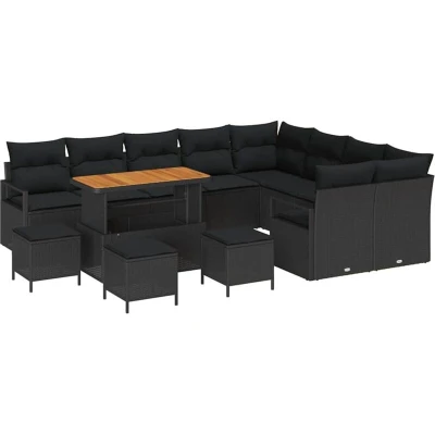 vidaXL 13 Piece Garden Sofa Set with Cushions Black Poly Rattan Acacia