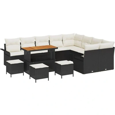 vidaXL 13 Piece Garden Sofa Set with Cushions Black Poly Rattan Acacia