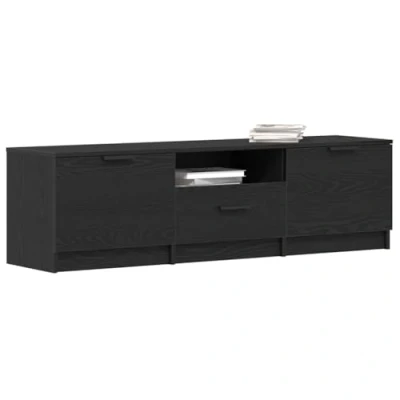 ManoManoGeneral description This Rectangular Black Oak TV Cabinet blends functionality with modern style, making it a fantastic feature in your living room. With its smooth black finish, sturdy engineered wood build, and spacious storage, it's perfect for showcasing your TV and keeping your media organized. Made from top-quality engineered wood, this cabinet is built to handle daily wear and tear while maintaining its sleek look. Its clean lines and chic black oak finish fit well with various decor styles, from modern to minimalist, adding a striking centerpiece to your room. Technical specifications Dimensions: 140 x 35 x 40 cm (L x W x H) Weight: 23.5 kg Material: Engineered wood Colour: Black Shape: Rectangular Finish: Wood grain texture Indoor/Outdoor: Indoor Only Number of Doors: 2 Surface Height: 2 cm Assembly Required: Yes Recommended Number of People for Assembly: 2 Usage This versatile cabinet is suitable for various settings, such as living rooms or media rooms. It is perfect for