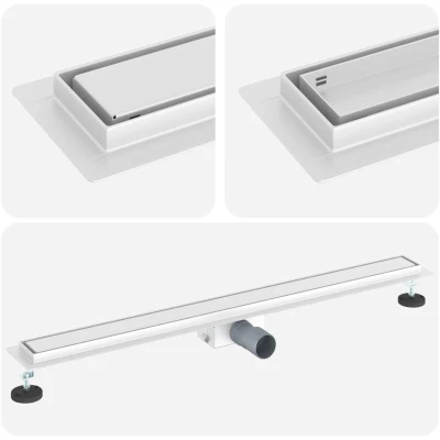 This modern shower drain combines style with functionality, perfect for any contemporary bathroom. With its sleek, rectangular shape and stainless steel construction, this shower drain is both a practical and attractive addition, designed to fit seamlessly into various modern interiors, enhancing the spa-like atmosphere in your bathroom. Height Adjustable Design This shower drain features an adjustable height feature ranging from 0 to 30 mm, allowing for precise customization to suit various floor levels or preferences. Its flexibility ensures a seamless fit in diverse bathroom settings, offering practical solutions for uneven surfaces or design changes. Stainless Steel Construction Made from robust stainless steel 304, this drain provides exceptional durability and resistance to .The material's polished finish adds a sleek, modern touch to your bathroom, while its strength ensures a long-lasting solution to effective water management. Rectangular Shape for Optimal Drainage The rectangular design not only enhances modern aesthetics but also optimizes water flow, reducing pooling in the shower area. This efficient design ensures cleaner, safer, and more hygienic bathroom conditions by effectively channeling water away from the surface. Comprehensive Components Included Delivered with well-fitted components, including a height-adjustable foot for stability, a waterproof cloth for additional protection, and a plastic pipe for complete utility. These elements are engineered for compatibility and performance, supporting easy installation and superior function. Simple Assembly Process Assembly is straightforward, requiring only a screwdriver and scissors, with a single person able to complete it. This easy setup process means you'll be able to enjoy your upgraded bathroom feature in no time, offering convenience and ease to users of any skill level.