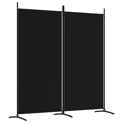 vidaXL 2 Panel Room Divider Foldable Privacy Screen Black Polyester Fabric and Sturdy Iron Frame Easy Assembly Versatile Use Modern Style 175x180 cm