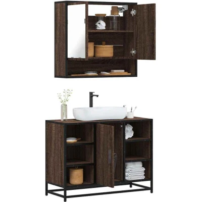 Vidaxl 2 Piece Bathroom Furniture Set Brown Oak Engineered Wood