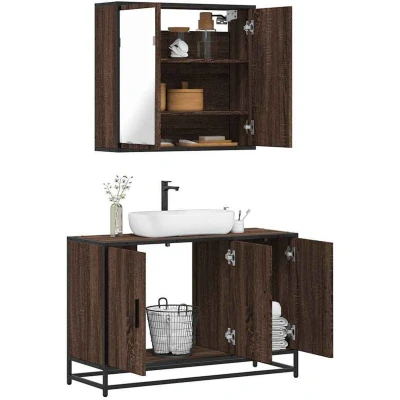 vidaXL 2 Piece Bathroom Furniture Set Brown Oak Engineered Wood