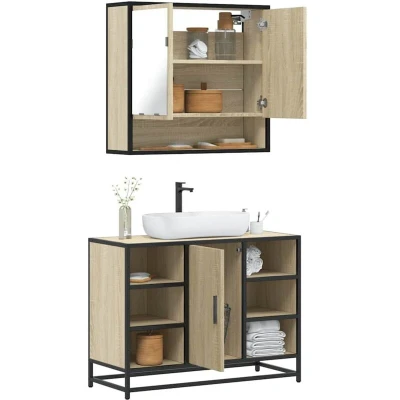 vidaXL 2 Piece Bathroom Furniture Set Sonoma Oak Engineered Wood