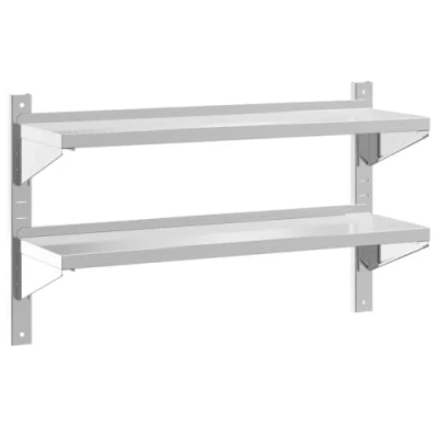 VidaXLFeaturing a practical design, the 2-tier wall shelf is meant to be the focal point of your living room, bedroom, etc. Sturdy and long-lasting: The wall floating shelf is made of stainless steel, making it durable, corrosion-resistant, and long-lasting.Space saving: This wall-mounted shelf can be wall-mounted to add extra storage space. That way, you can maximise your floor space and keep the area clean.Lifted edges: Delicate decor items are kept safe thanks to the wall storage with lifted edges.Easy to install: The wall rack is easy to install with the included mounting accessories.Multifunctional wall shelf: The wall-mounted shelf is made for both decorating and storing items in various sites like the commercial kitchen, home kitchen, garage, laundry room, utility and technical room, laboratory etc.