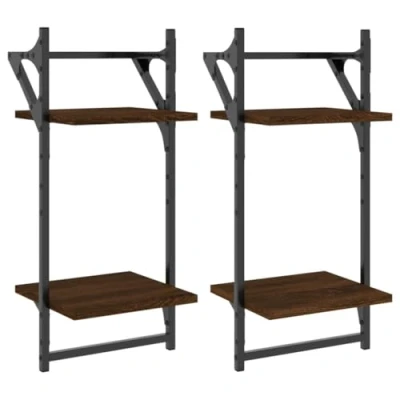 vidaXL 2 Tier Wall Shelves with Bars pcs Brown Oak 30x25x65 cm