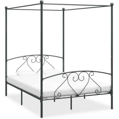 vidaXL 284444 Canopy Bed Frame without Mattress Grey Metal 160x200 cm