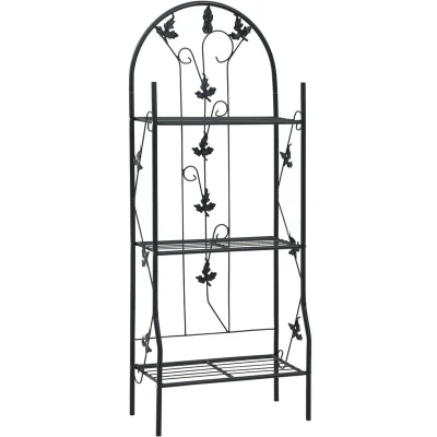 VidaXLThis plant rack, featuring a leaf-decorated design, will add a limitless charm to your garden, patio, balcony, terrace or other outdoor and indoor spaces! Constructed of iron tubing and coated in weather-resistant black epoxy, this plant stand is sturdy and easy to maintain. It has 3 shelves to provide ample space for putting and displaying your plants. And this flower pot rack is easy to assemble.
