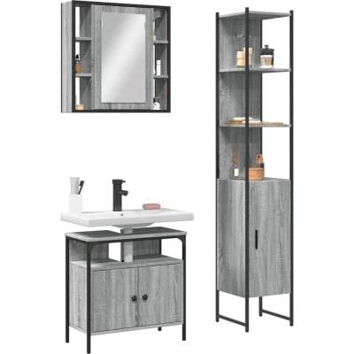Vidaxl 3 Piece Bathroom Cabinet Set Grey Sonoma Engineered Wood