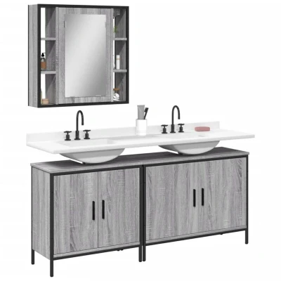 Vidaxl 3 Piece Bathroom Cabinet Set Grey Sonoma Engineered Wood