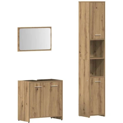 vidaXL 3 Piece Bathroom Furniture Set Artisan Oak Engineered Wood Sink Cabinet, Mirror, Storage Modern Style, Moisture Resistant, Ample Space 60 kg Capacity, Ideal for Home/Hotel