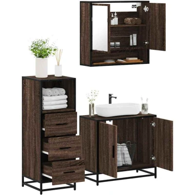 vidaXL 3 Piece Bathroom Furniture Set Brown Oak Engineered Wood