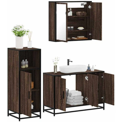 Vidaxl 3 Piece Bathroom Furniture Set Brown Oak Engineered Wood