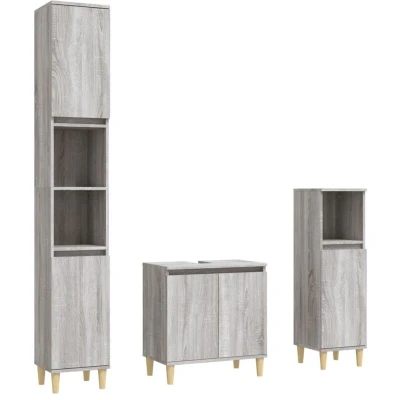 Vidaxl 3 Piece Bathroom Furniture Set Grey Sonoma Engineered Wood