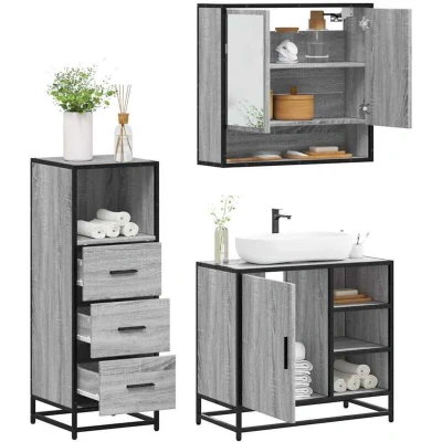 vidaXL 3 Piece Bathroom Furniture Set Grey Sonoma Engineered Wood